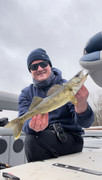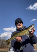 Took my little man out along with my father to a local lake to hit whatever would bite on crawlers. Weather was warm as was the water still in the 50’s. Little man hooked into a surprise nice bass he reeled in on his own. Giggling like crazy the whole time with his ultralight bent to the water. A nice afternoon out with 3 generations. Took to the Delaware for a quick Muskie session last week, only two hours. 3 fish up on lazy follows, and had a smaller fish head shot a bait and get no hooks. I inspected the bait after and you could see where he grabbed it. Tough break, that has been the theme the last 2 trips. I did witness a bear allll the way up in a tree the whole time and he remained there as I left. I imagine he was looking down at me in confusion as to why I was chucking those big lures around yielding no results. Made it back out yesterday on the river in between school pickup and drop off. Water was 41 and the rain had raised the river up about 6 inches and I noticed a lot less exposed rocks. I Barely fired up the big motor as I picked a head of a pool that necked down then opened up to about a 10-12 foot deep wider pool section. Managed 3 eyes taken on a jerkbait and jigs before I lost the cloud cover. All fish were released. Big cool down coming this weekend into next week.
