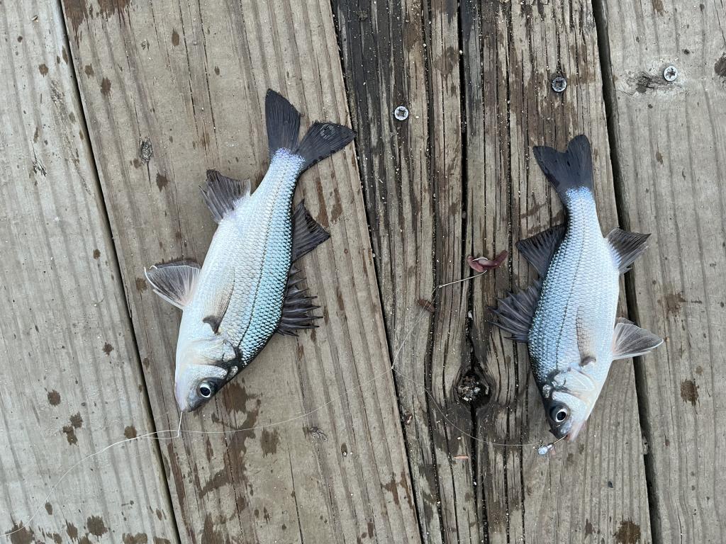 Went ultralight fishing 🎣 in 45 degrees Carnegie Lake this afternoon on a warm, cloudy day with a light southeast wind. 10 fishermen caught lots of fish. Young Alec from Florida caught his first NJ fish 🐟, then I took his picture with his cell phone camera. He is going to be in my spot a lot. I caught and released 21 white perch including a double, 4 gizzard shad a yellow perch and a 13” white crappie with Walmart red worms 🪱 on 4 lb test line. The last fish 🐠 that I caught in 2024 was a 13” crappie. Catching 27 fish 🎣 was an outstanding way to end the year. I caught 1,829 fish 🐟 in 235 NJ fresh water fishing 🎣 trips this year and won 🏆 7 NJ Skillful Angler Recognition Awards. In salt water, I caught 59 fish 🐠 in 52 trips and won 🏆 an award 🥈 with my 33” 12 lb bluefish that was knocked out of first place by half an inch but was caught and released in NY at 12.5 lb. Winning 🏅 a total of 87 awards was amazing 🤩.