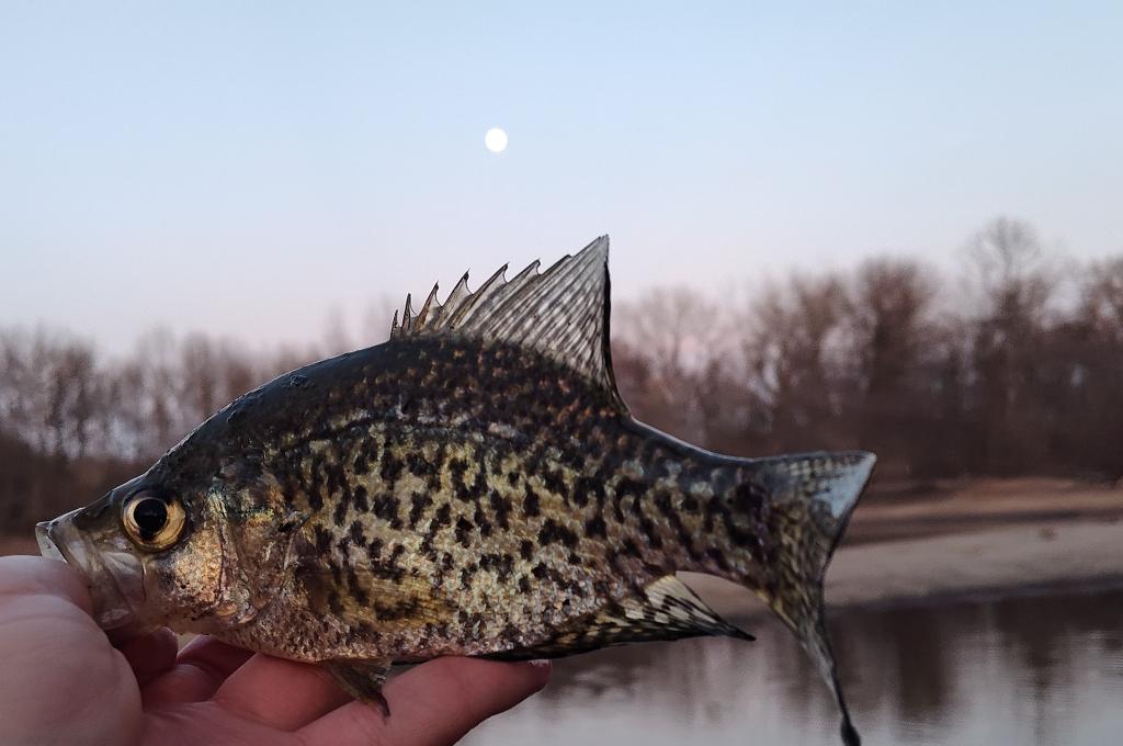 Hit the pond after work with Dev. I had 4 fish on 5 casts and then it slowed up as the wind went hard out of the east, Sharky must have had a charter booked in heaven ❤️. As the sunset and full moon went up they went on like crazy. Dev did get more species as she got a bigmouth catfish and finally landed the college cockolla STRIGOI, after losing this thing 20x over the last 5yrs she wasn't losing it this time as she rolled it in breadcrumbs Directa style! Also had the 1st Pennsport piranha of the season. I don't know if it really made a difference but I was using these eyehole jigs that ya stuff with power bait & I had way more bites than dev and we were fishing the same exact plastic just the jig head different. Looking forward to hitting coal mining country soon as it warms up another few degrees