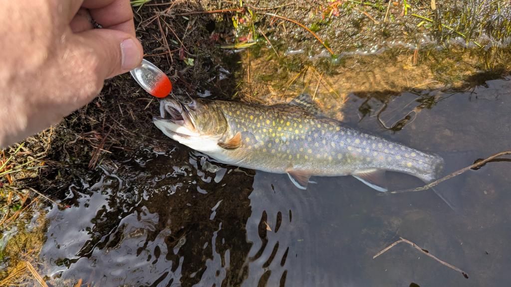 Lots of .5 lb. - 1.5 lb. trout. I landed one 24-inch lunker rainbow, probably a 5-pounder. The trout were very interested in spinners; not so much plugs or spoons. |