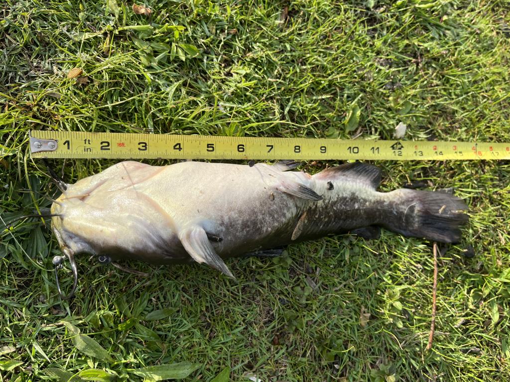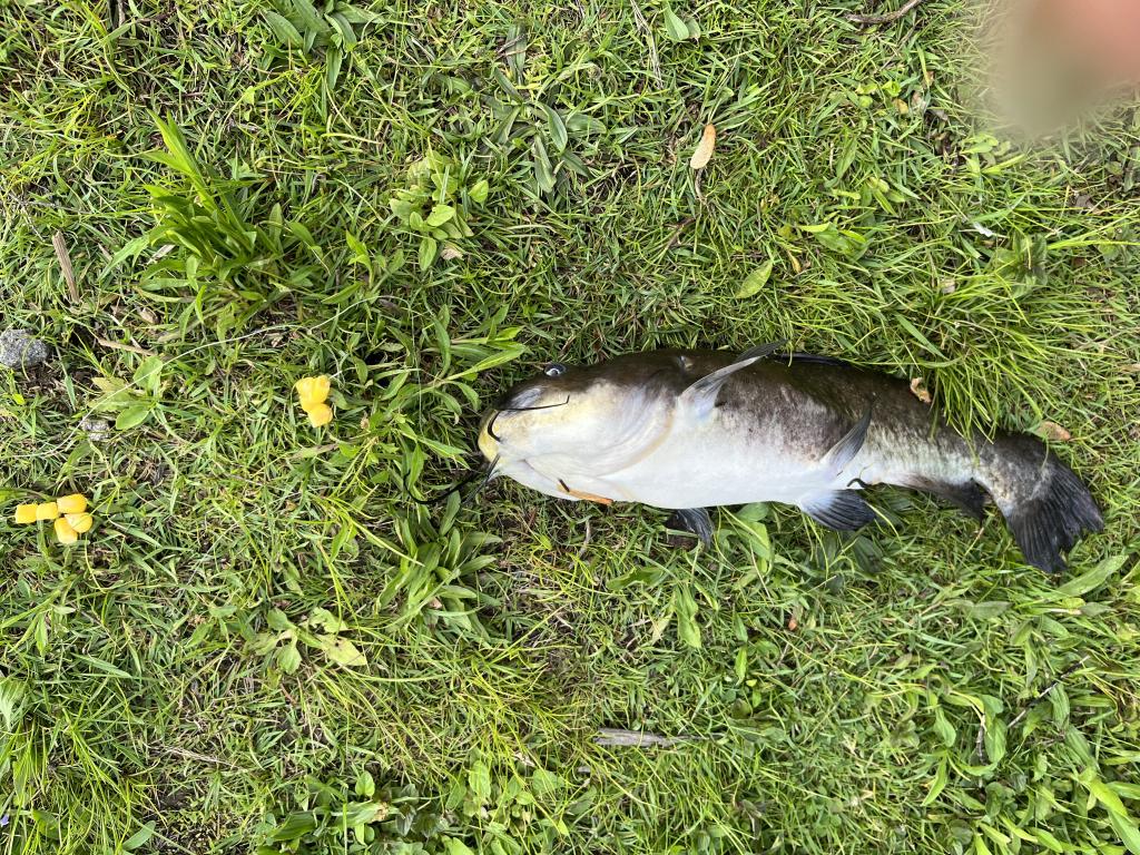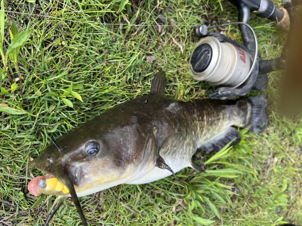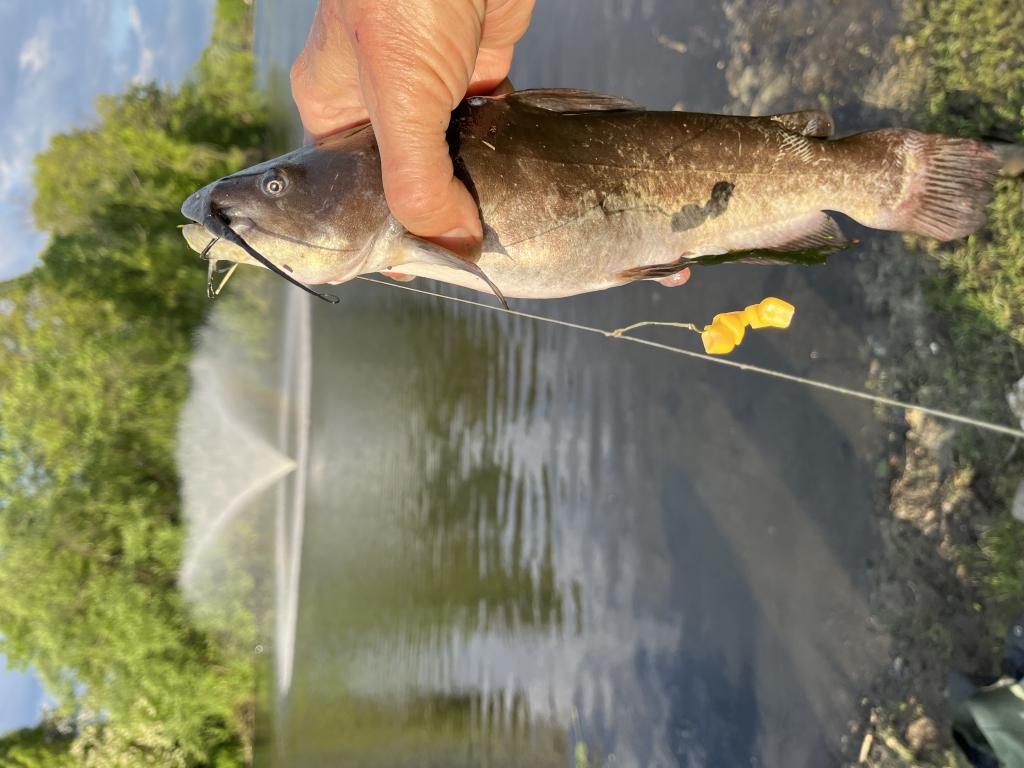 Went carping in 75 degrees Colonial Lake this evening in the rain before, during and after a cold front. Wind changed from northeast to northwest. Saw 9 fishermen catch nothing. Canada geese, mallards 🦆, crows 🐦*⬛, mourning doves 🕊️, redwing blackbirds 🐦*⬛, killdeer and a sandpiper were nearby. I took lots of pics. Threw out canned, whole kernel corn 🌽 for chum, then caught and released a 14” 9” girth 1 lb 6 oz brown bullhead with a big, red sore on its upper lip 👄 with corn 🌽 bait. Saw a large snapping turtle 🐢 head sticking out of the water nearby then hooked something that just swam towards me like a turtle 🐢. It was another 14” brown bullhead with her guts protruding from her vent. Girth was only 7.5” and weight was only 1 lb 2 oz. I’m applying for two more NJ Skillful Angler Recognition Awards.