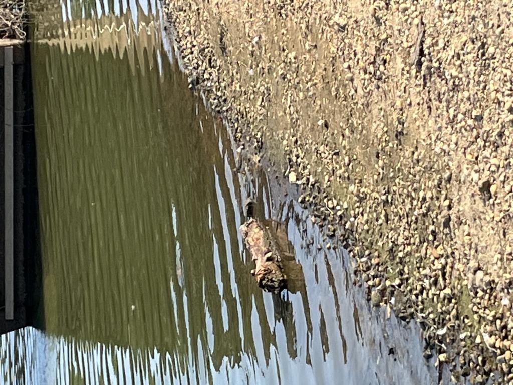 Went fishing 🎣 in 82.7 degrees Robert G Martin Lake this evening during a nor’easter. Weather was sunny and cool. Two fishermen were there. The lake stopped draining into Pond Run and all of the fish 🐟 died from hypoxia in the first pool below the dam. A large flock of sandpipers was at the lake. Fish 🐠 were jumping. Minnows were near the shore. I threw out canned, whole kernel corn 🌽 for chum, then caught a bluegill with corn 🌽 bait. Hooked a carp that jumped then threw the hook. Landed a largemouth bass and 7 bluegills with a #14 gold hook on 2 lb test line with no bait. Took pictures.