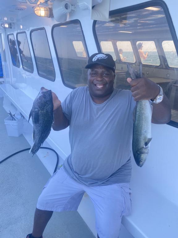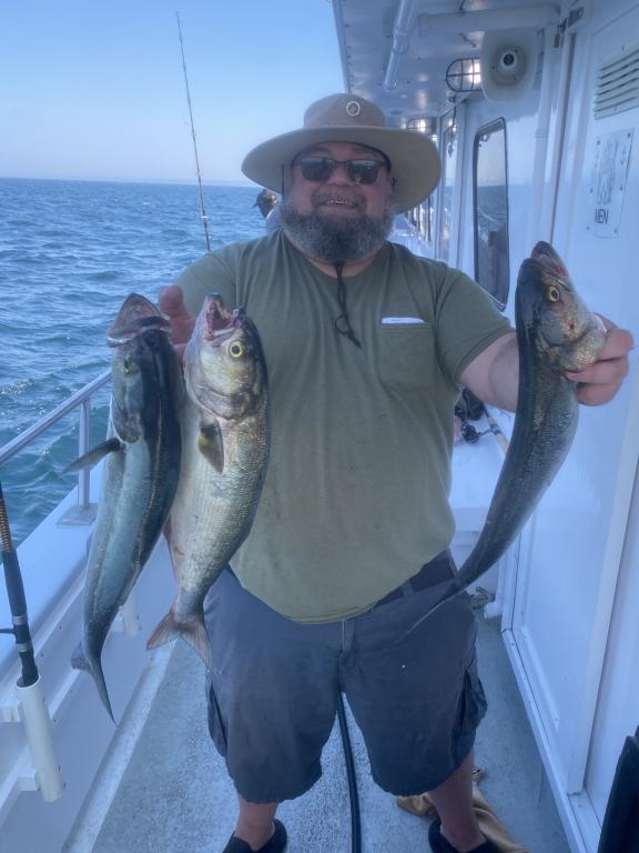 The BLUES were in the 2 to 8-pound range, and we also saw some SEA BASS mixed in
