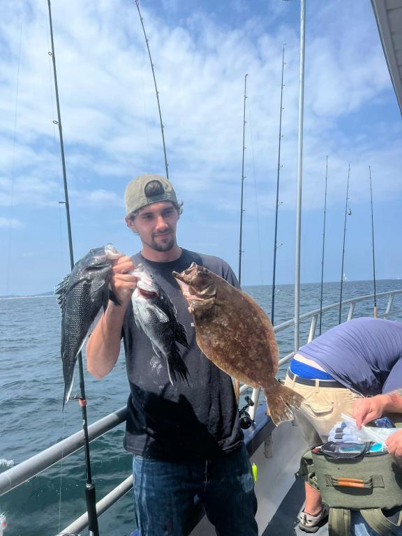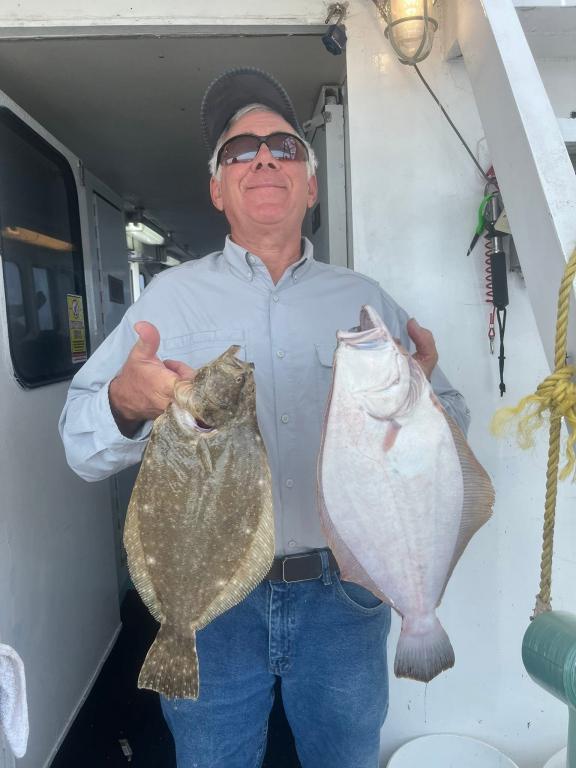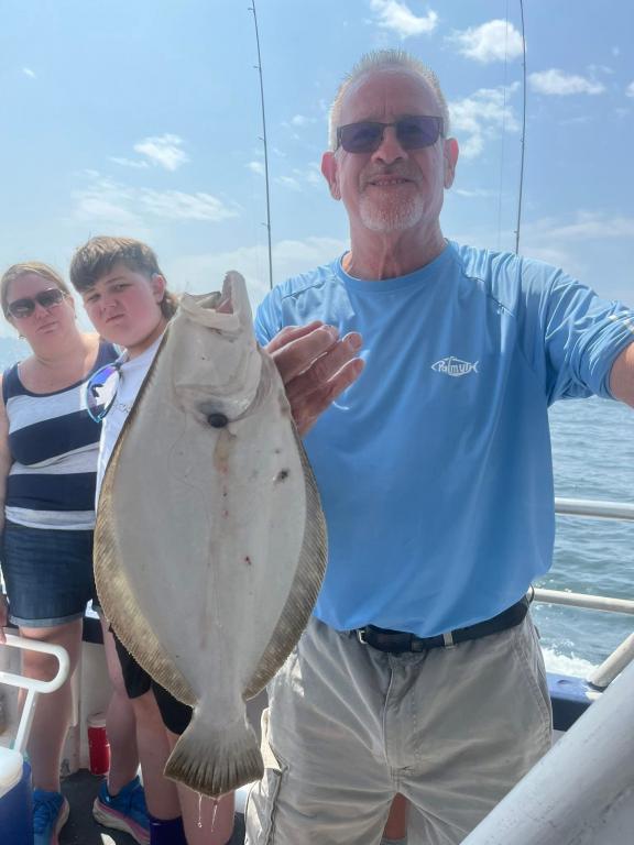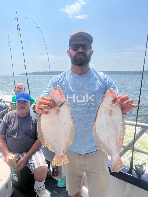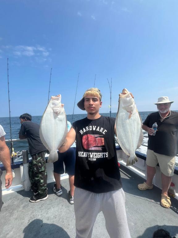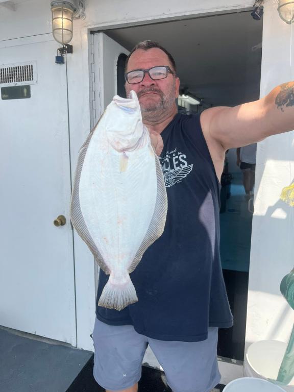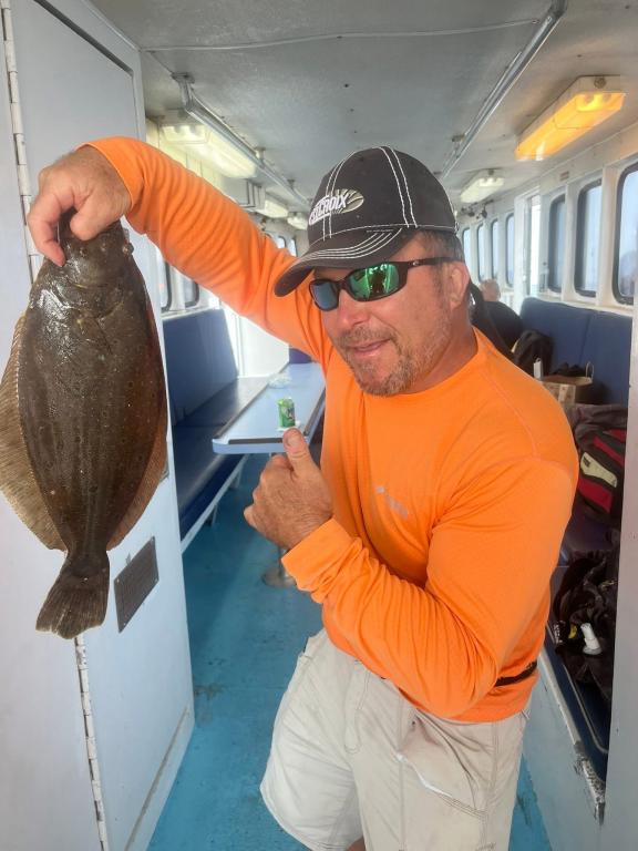 Hey gang with a few of the boats chartered today, it was a busy day like I said it was gonna be. Big crowd of customers for a beautiful day of mid August in the ocean. We bounced around and had life all day with quality keepers, shorts and some big blue heads again. Frank from the Dark Horse won the daily pool with a nice flattie around 5.5 6 lbs. The gentleman fishing in the bow today was high hook with 5 keeper fluke (ORL) and the gentleman next to him had 4 keeper flukes (ORL). Hats off to my crew John and Larry for a great job working deck all day non stop. Captain Jack will be at the helm tomorrow, Sunday with the same crew so let’s go fishing! Sailing everyday 7:30AM - 2:30PM and the fare is $90, we supply spearing as bait and free ice for your catch.
