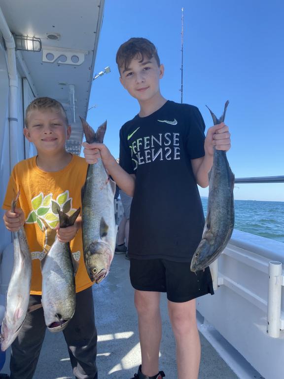Kids, big smiles and nice bluefish enjoying a day on the water with their family. Good job Captain, exactly what this world can use more of. I'd suspect after the blow it was a light crowd today so kudos for sailing and making a lot of kids happy.