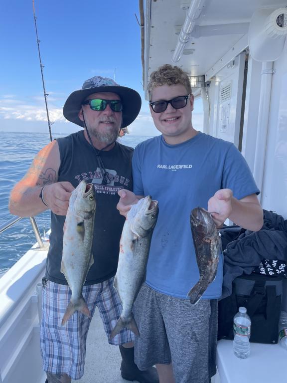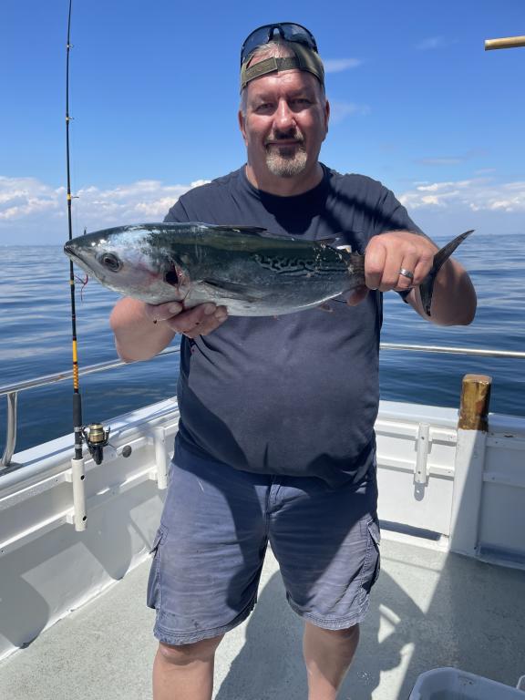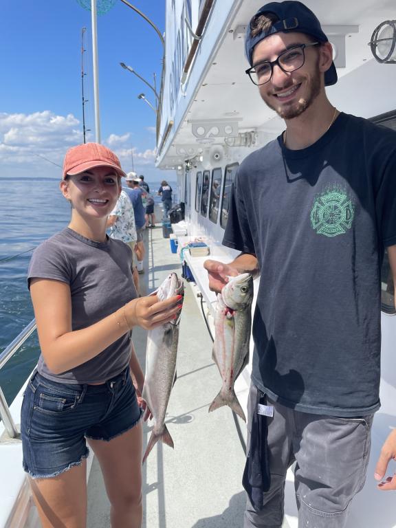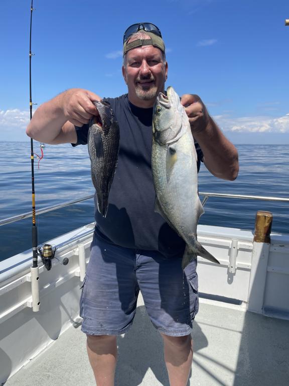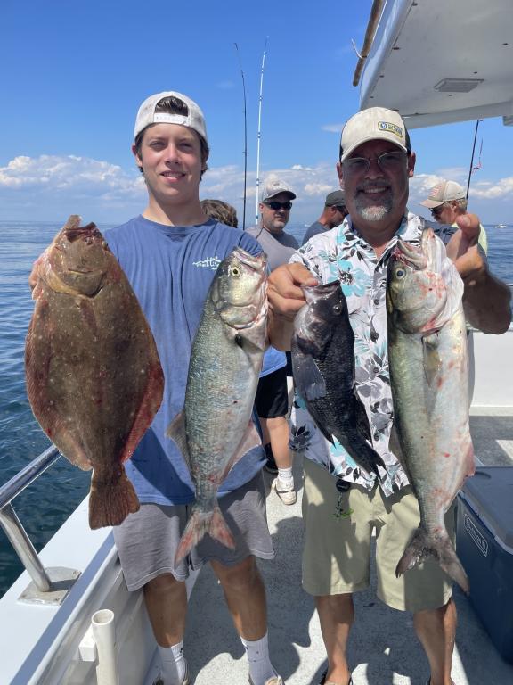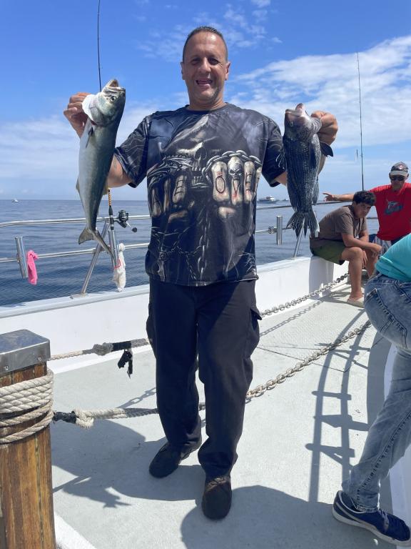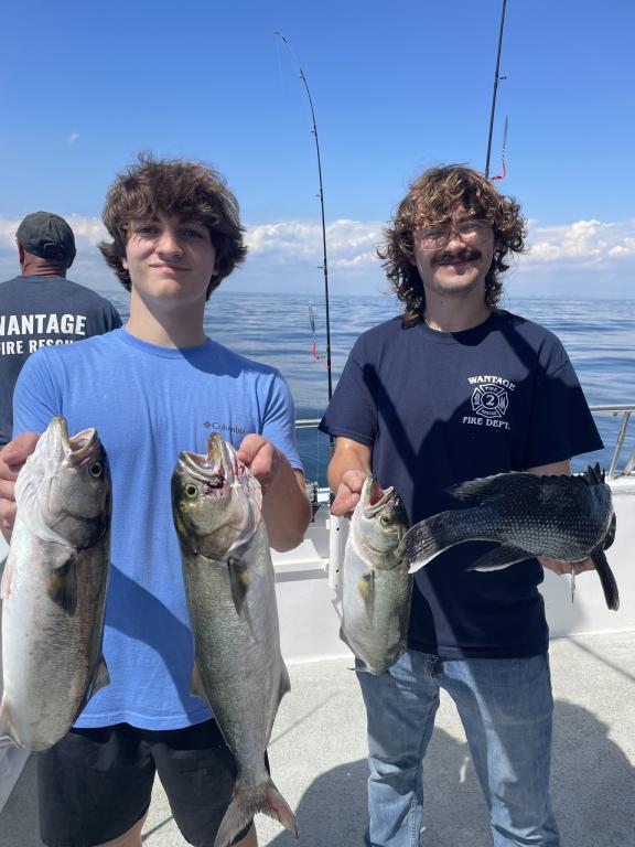 Some anglers did get their limit of BLUES along with JUMBO SEA BASS and some KEEPER FLUKE. We also saw some FALSE ALBIES and SPANISH MACKEREL in the mix. There are plenty of fish around and the weather will be gorgeous this holiday weekend with sunny skies and temperatures in the 70s. Make your reservations and come enjoy a great day on the water. OUR NIGHT FISHING TRIPS START ONE WEEK FROM TODAY - FRIDAY, SEPT. 5TH DEPARTING AT 7 PM. Get ready for an unforgettable evening on the water! The boat departs at 7:00 PM and returns at 1:30 AM, giving you plenty of time to catch some fish under the stars. Trips run every Friday and Saturday night into October, so get your friends together and book your spot for one of these exciting nighttime adventures! Don't miss out - the fish (and fun) are waiting! The GOLDEN EAGLE sails every day for STRIPERS & BLUES at 7:30 am from Belmar Marina in Belmar, NJ. For more information visit us at www.goldeneaglefishing.com or call 732-681-6144. |