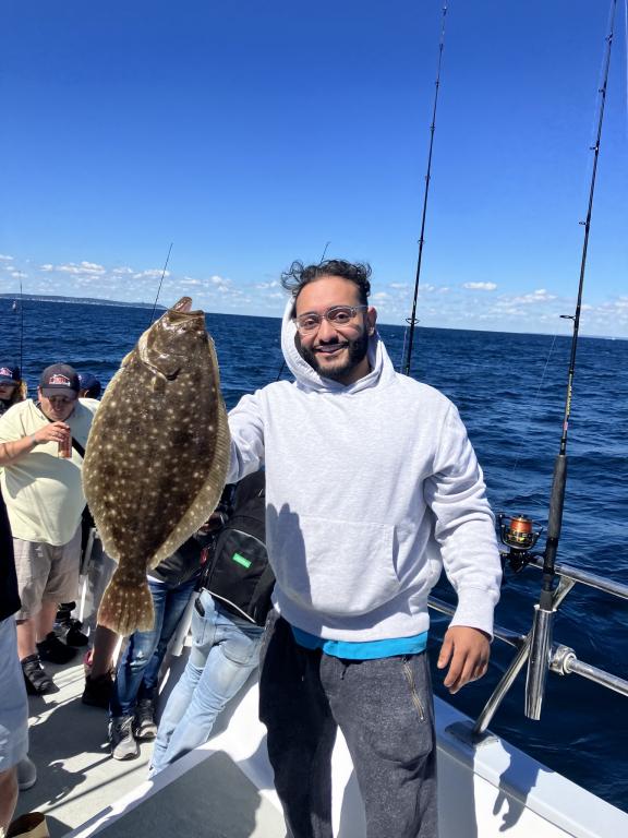![]() The BLUES did not want to cooperate with us today but we ended with some nice KEEPER FLUKE along with throwbacks and had good action on SEA BASS including plenty of JUMBOS on board. We also had an ALBIE and a TRIGGERFISH added to the mix.
