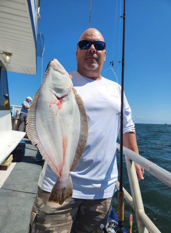 Hey gang, we were able to find some bigger fluke today. Regular Ben nailed the beauty 8 lb on the button. Kevin had 2 nice keepers. Matt from the Dorothy B had a nice solid flatty was runner-up to Ben's fish. We started today off where we boated some keepers at the end of the day yesterday, but it was no good there and we had to move to another location. We had short flukes in the mix again and it was a shame to throw the big blue knuckle heads back. At the end of the day the drift got super fast at 1.8. Was a fun day to be out on the fishing grounds. Let's go fishing!! Sailing everyday 7: 30AM 2:30PM, Open boat. We supply free ice for your catch and spearing for bait. Thanks Captain Scott,