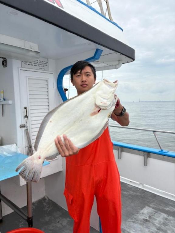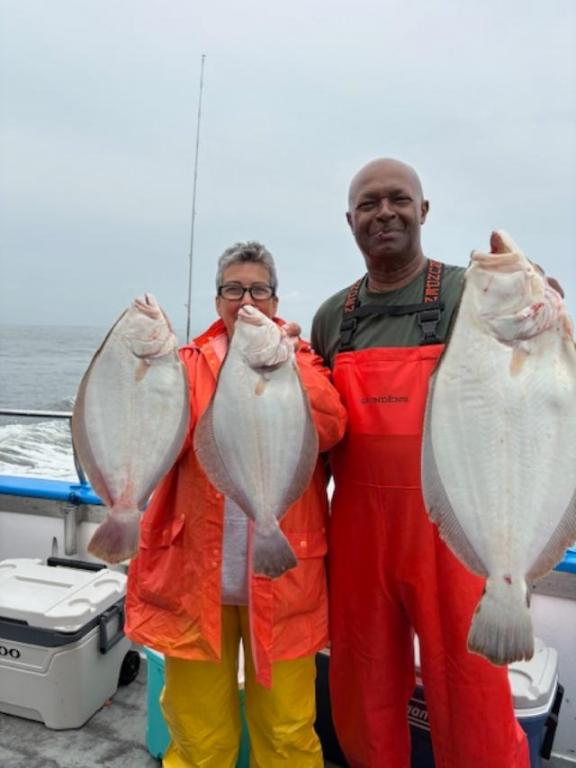 Took a ride and left the area, found no current once again so we worked the throttles to get a drift. Had fish right away with a nice bunch of quality fluke coming in. Couple customers ended up with their three, several guys with two like yesterday.