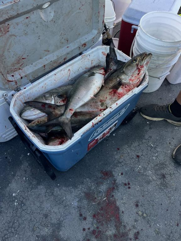 Fishing was on the slower side today, but we still saw some great moments with a mix of jumbo blues and smaller fish. Dan took high hook of the day with 10 fish landed.
