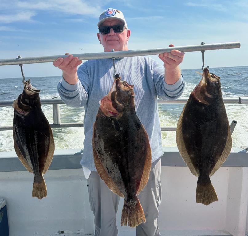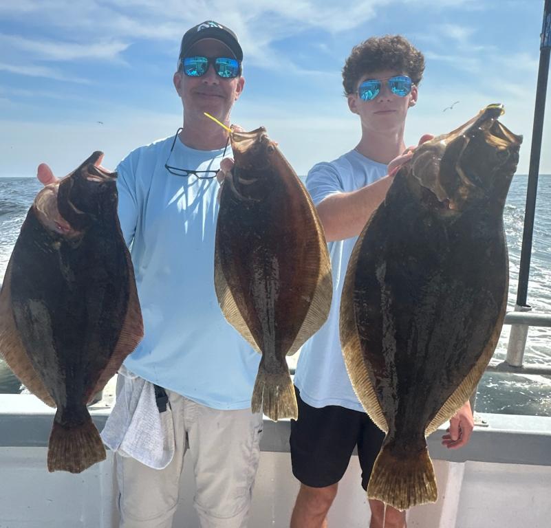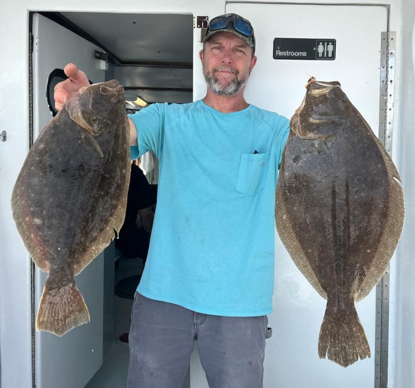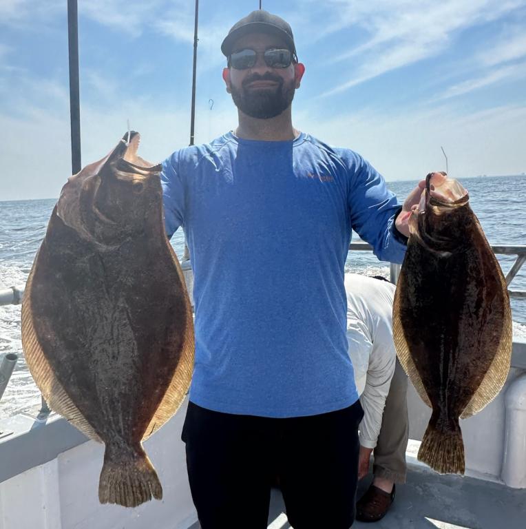 Another drop dead gorgeous day on the fluke grounds today. Steamed right to where we had the best life yesterday to only find a couple of keepers and a handful of shorts. Knew it wasn't going to happen so took off. Looked all over the place, not finding too much in our travels. Finally landed on a very nice patch of fish and the guys went to work. All the keepers were very nice quality with decent short life in the mix. The out of season jumbo Seabass were a pain too. Couple of limits, couple with 2 and a bunch of singles spread around. Lisette stuck the pool winner showing all the guys up💪