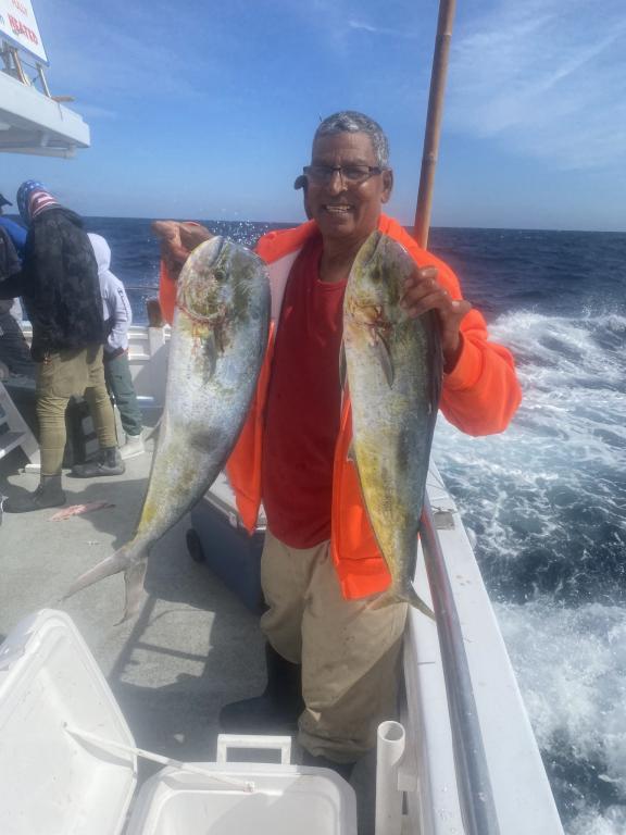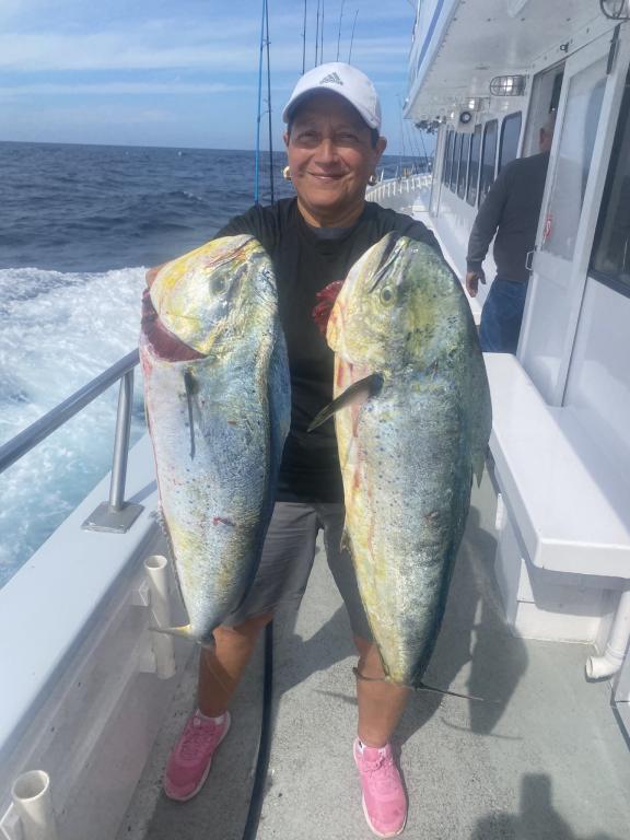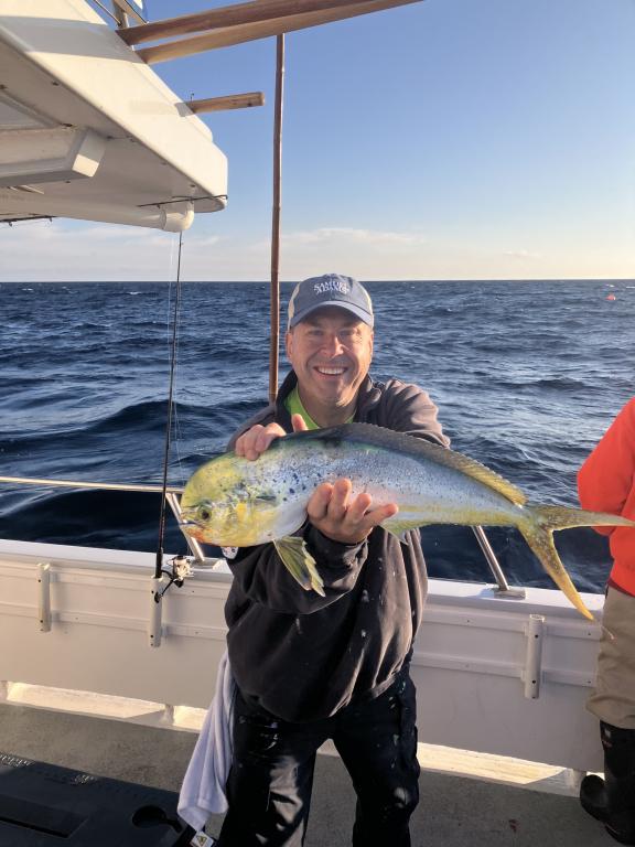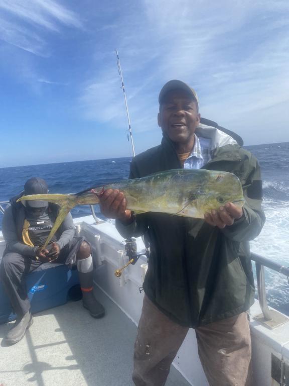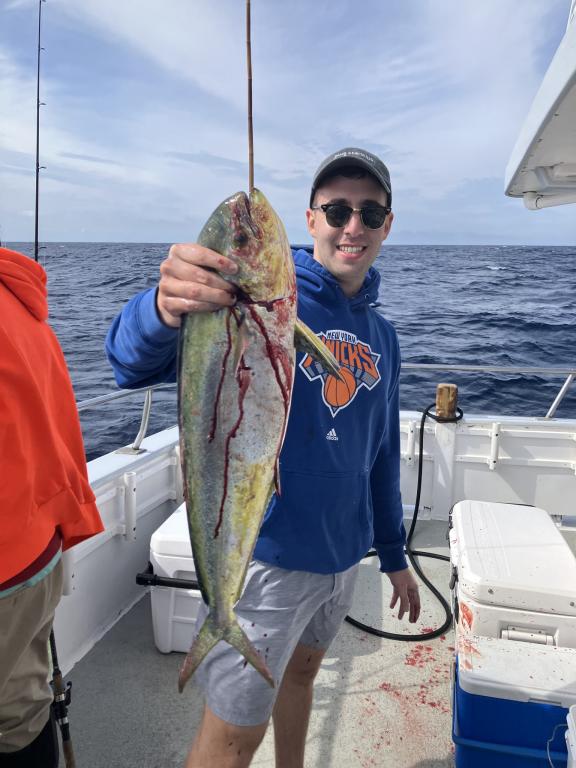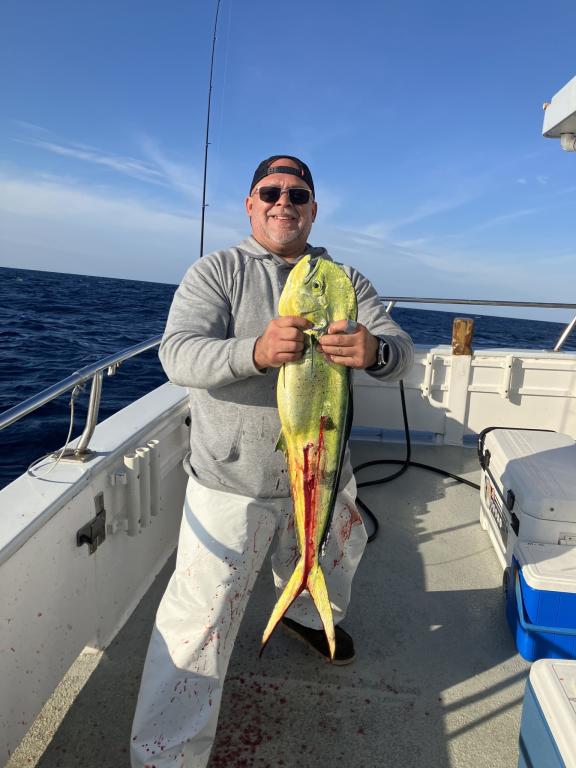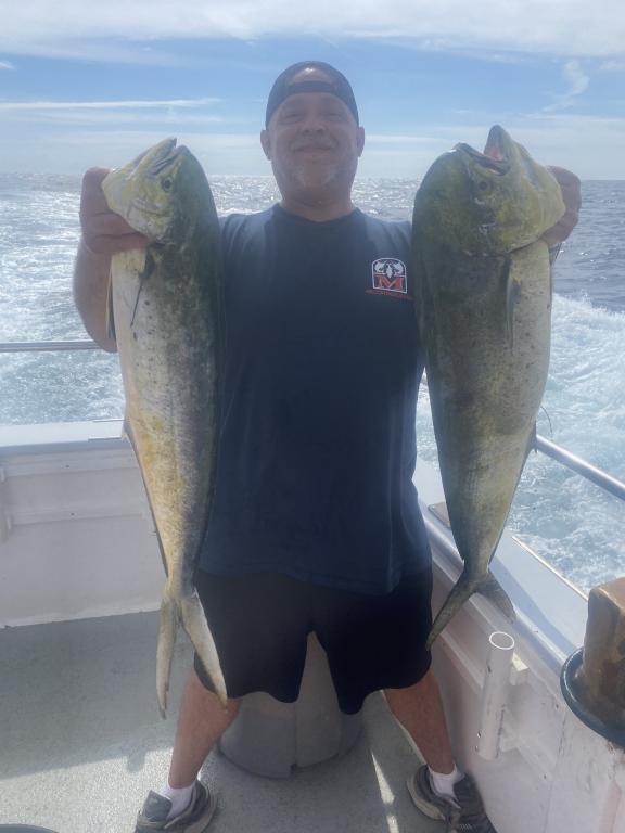 The weather forecast was definitely wrong for our Mahi Trip with a lot higher winds than was expected! It was tough to stay on the pots but we ended up with some decent-sized MAHI.