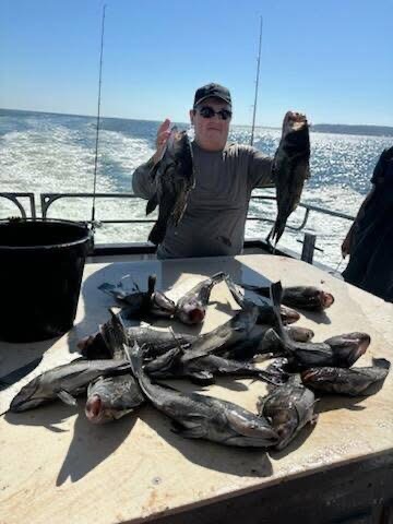 Hey gang, we had a nice big crowd of Prowler regulars for a beautiful Saturday in early Oct. We didn't waste any time today, we used our speed and flew out to the grounds. We anchored first thing this morning and we picked away at some keeper sea bass. But we lost the current and we went on the float. We had very little drift but we worked hard today and worked the throttles - that was the key. We had the fish flying over the rails. Nice big sea bass. We had multiple limits. Larry and Danny were pretty busy down on deck today. When we got to the grounds there were no little boats, but that changed with it being a Saturday. We just had to work a little harder to get the job done. I know Lenny, Wayne and others had their limit and Big Joe was banging them up pretty good up in the bow. Plus the rest of the gang. The boys have been filleting for the last hour and a half. We fished with green crabs and clams today. Although I'd say 95% of the sea bass were caught on fresh clams today. I'll post pics a little later. Capt. Jack will be at the helm tomorrow. Don't miss out. Let's go fishing. I'll be back at the helm for Monday's trip. Felt good to be a party boat captain today. Sailing every day 7:30 AM to 2:30 PM; fare is $90; fresh clams supplied; free ice for your catch. Thanks, Capt. Scott