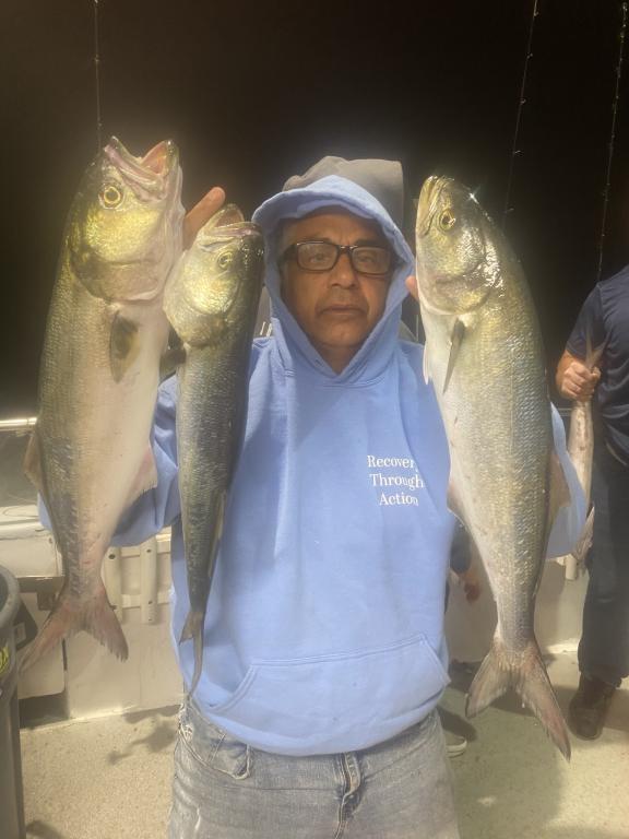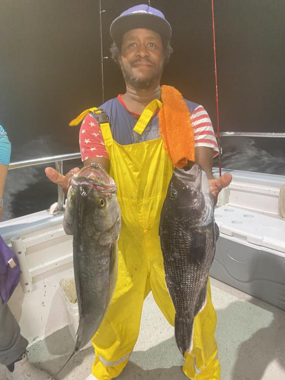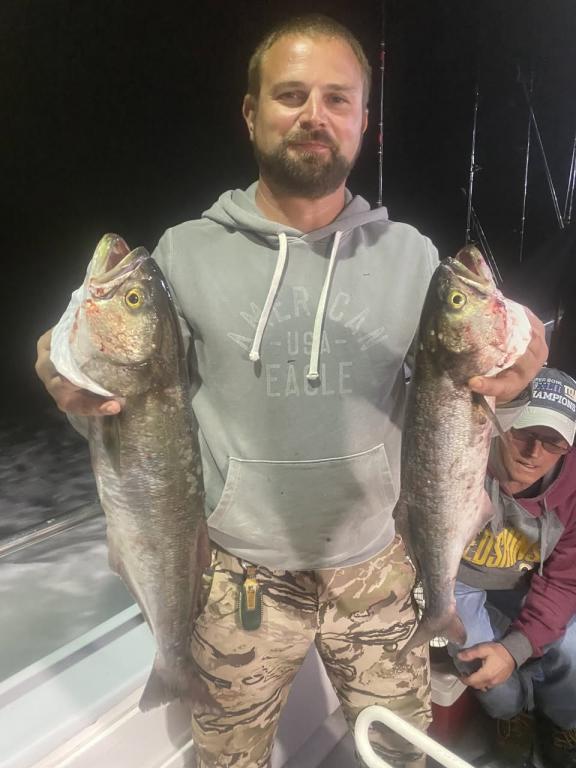 The BLUES did not want to cooperate so we opted to bottom fish instead. There were not a lot of throwbacks as the majority of the SEA BASS were JUMBOS! There was plenty of action around the boat at times on a number of stops. There were many limits of BLUES on board last night and the fish were caught mainly on bait while a few were caught on jigs. We also had some nice KEEPER SEA BASS. Overall, it was a good night of fishing! Make your reservations for our next exciting Saturday Night Fishing Trip. The boat will be out on a trip tomorrow but we'll be back to our normal schedule Tuesday. The GOLDEN EAGLE sails every day for STRIPERS & BLUES at 7:30 am from Belmar Marina in Belmar, NJ. For more information visit us at www.goldeneaglefishing.com or call 732-681-6144. |