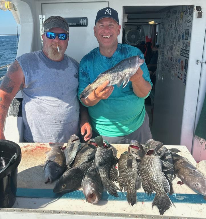 Woahh now that was some good fishing!!! Truly drop and stick fishing from start to finish. Couple drops were absolutely loaded with all inshore jumbos! Double header keepers flying around the boat all day long. Checked out some other areas at the end for the next few days and found even faster fishing with most baits not even hitting the bottom🔥 A truly incredible amount of fish moved in! Bunch of guys had over their limit, even some with double limits, spreading the love around the boat to those who had short fever. Plenty of fish to go around for everyone to go home with! Also had 1 drop today that was LOADED with the biggest kind of porgies! Was able to add a bunch of them to the box as well. And as usual, the togs were snapping if you were able to get a bait down to them. Bunch of keepers while throwing a handful of roaster size fish back to make more baby togs. All in all a fantastic day on the water, fishing and weather wise!