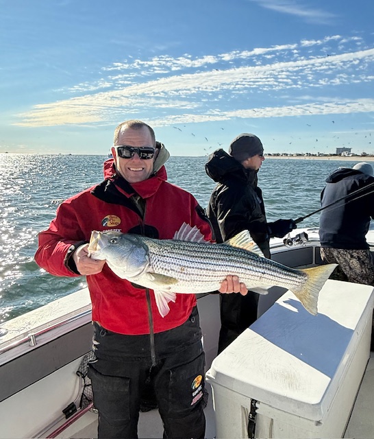 Pat and friends were out this morning. Got into@some life right away and had a pick of some shorts and boxed a limit of keepers and released a few over. Action died off fairly quick, so we took a ride and got into some action with fish blowing bunkers out of the water and released a bunch more before calling it. This afternoon’s open boat trip saw great action all afternoon. Took a long ride and was worth it with bass blowing bunkers out of the water with some nicer fish showing. Boxed an easy limit and released another 50 fish with @grayfishtag tags in them. Thanks for fishing hard guys.