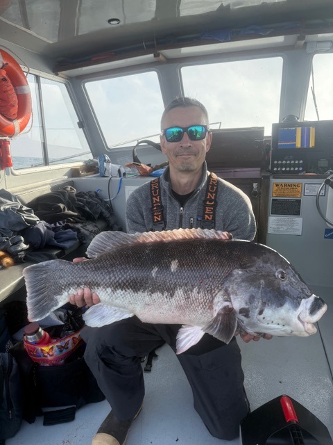 Vladimir V. of New Jersey shattered the state record on November 9 when he hauled in this monster tog, weighing in at 23 lbs 15.12 oz and 33 inches long, from Newport’s coastal waters while fishing aboard a Tall Tailz Charter vessel. This catch officially overtakes the previous 2024 record of 22 lbs 5.28 oz (also 33 inches). |