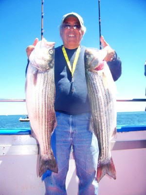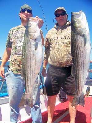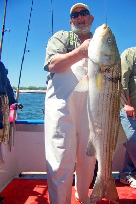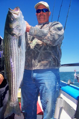 Had a few good shots with just about all keepers. Bite didn't last as long as yesterday so we went in search of the bunker. When we found them, we had the best shot of big fish this season. Several over 25 pounds and a few over 30!! Big Mike had the first one at 32 pounds, followed by Vinny (Vintastic) with the new pool leading 34! Hammer, Eddie, Gerry, the PA Guys and Capt.Ron Sr all had fish from 25 lbs and up!! Great day on the water, it doesn't get any better than this!! Good pics and another video of todays action.....make sure to double click the vid so you get the full screen view!! Capt.ron http://www.youtube.com/watch?v=glVHAArgrJA |