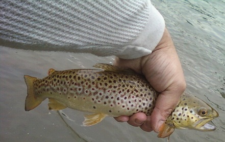 Better late than never! Hit the Beaverkill river with Uncle Norm on friday got to the water early right as the night turned into day.. River was high and looked liked chocolate milk but after a 2hr drive i wasnt leaving without wetting a line.. Took a about 15 casts without a hit using a rapala cd3, decided to switch to a mepps agilia #2 with a copper blade and by my second cast had some action nothing big just a few browns but consistent at least 7 within 20 mins!!! get a text from my bro in law asking how i was doing and asked if i caught any nice ones told him all stockie size ones then put my phone back in my wader pocket and bang my rod was bending and my drag was singing pulled out a 20 inch brownie... Wound up with about 34 fish on the day majority were average stockie size but had about 5 nice size ones between the 15 -18 inch range... Also landed a 24 inch slob of a rainbow tried to take a pic with my phone but was too worried about harming the fish so i kept him in the water before i could snap the pic he managed to escape and swim away... Great day and well worth the trip cant wait to go up again should be good for another month or so..