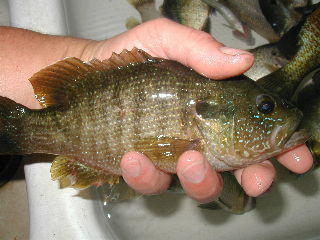 ![]() You may be right, I have caught a lot of fish and this was a first. I should have taken a picture with it's mouth open. It's mouth was hinged, like a bass. Look at this picture of a green sunfish. It doesn't have a hinged mouth. I still think it is a cross breed.