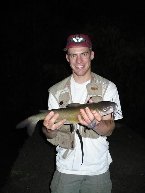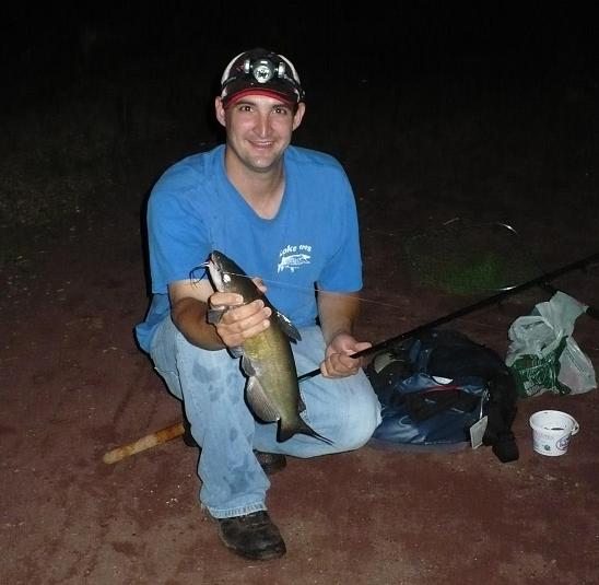 It killed me seeing you guys catching cats Saturday night, so I went back on Sunday with some live bluegills and chicken livers. Andy met me there and hung out while I soaked some livers and live bluegills from 8am to 10ish or so. Tried the river first. It was still moving, but I was able to hold with 2 and 3-oz. no-roll sinkers. Even though I kept on the bottom, I think the current was pulling the livers off and definitely effecting the natural presentation of the live bluegill. With an hour before I needed to head home, I went back to canal. Even a seasoned angler like Andy was surprised when I showed him how a 2 or 3-pound channel can swallow an entire, full-grown bluegill. The livers didn't get scratched. It wasn't a bruiser, but at least I got out, got to chill with Andy and got myself a kitty. I'll put a pic up of the cat later along with one that Chris_JC scored on Saturday. Peez!!!
