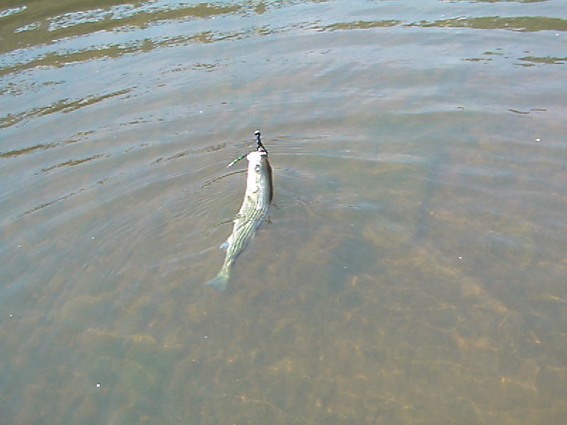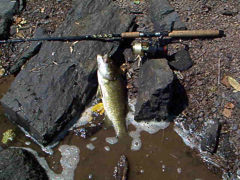 I started out at the Weston Causway dam, I got a smallmouth and a small striper there on jigs, moved upstream to the next dam and got a nice smallmouth in a shallow run on a large plug. I did a few throws at both spots in the slow water trying to scare up a pike, nothin' doing.