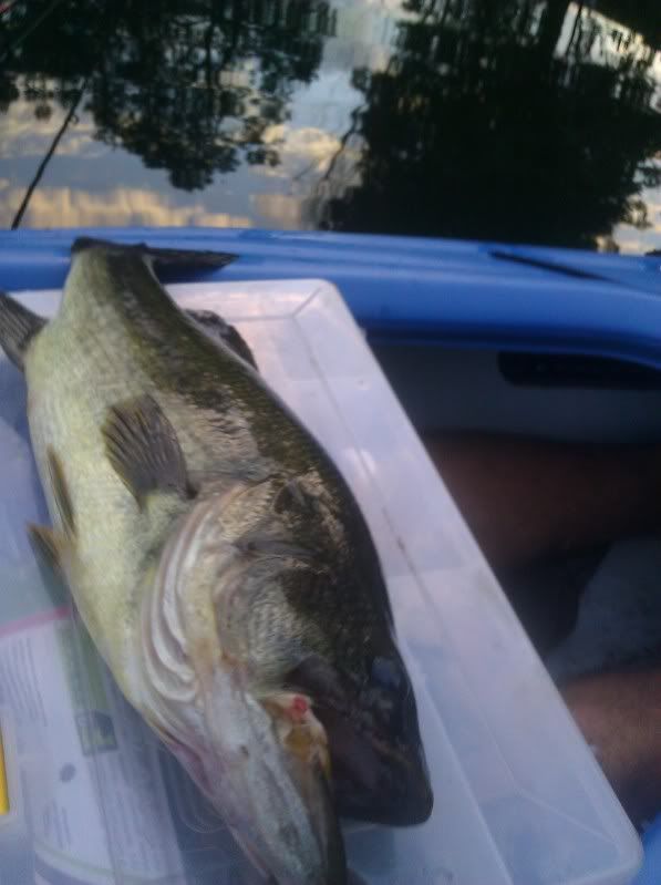 Threw the 'yak in the water around 630pm. I wasn't expecting a huge night due to the storms yesterday and I was right. Tossed a 4" pink/shad Senko with no luck until about 7:45. Switched to a watermelon flake 4" Senko and within 1 cast was rewarded with my best freshwater fight yet...