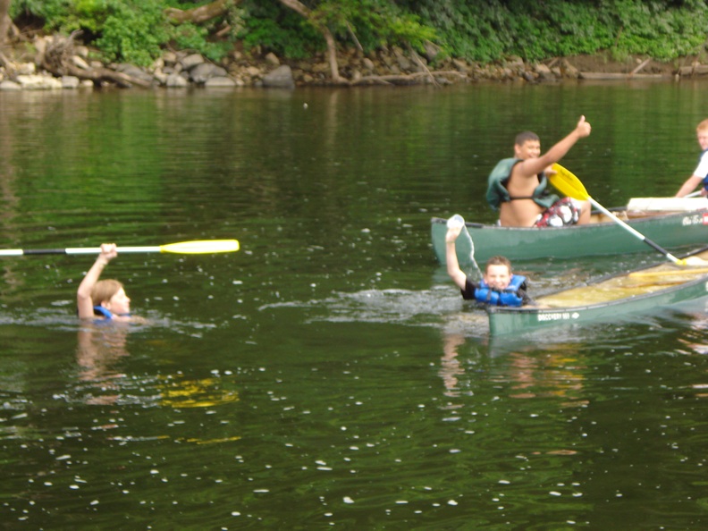 I took a pic of the campers canoeing, this is not how you use a canoe on the river, STUPID KIDS!!! Thats 1 of 3 groups of kids who managed to flip there canoe!!!