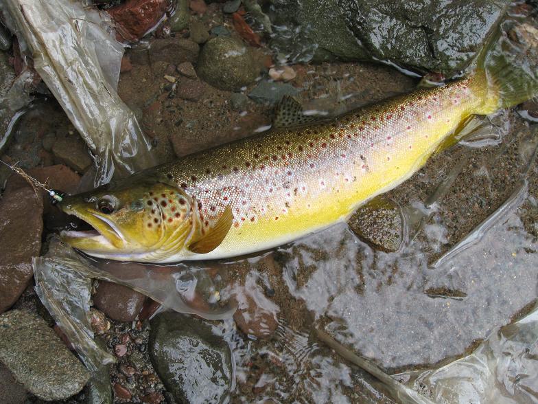 I had my head-cam with me, and got a video of catching a beautiful 16" brownie on an ugly, rusty spinner. Link here: http://www.youtube.com/watch?v=Y3wtTofdl3s Photo of the fish below.