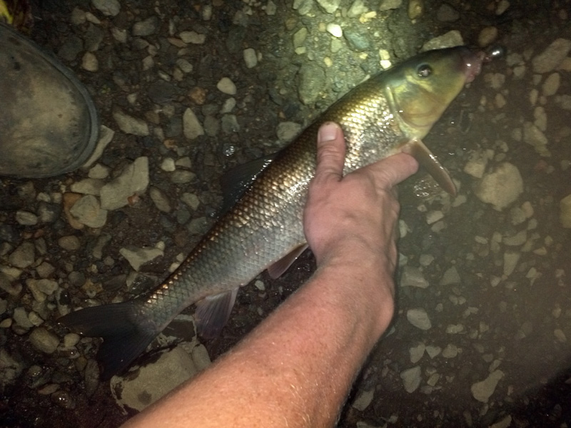 ![]() Carp? 18", 3 pounds. I didn't know they were in the river here (upstream of the Boonton dams). Had some more bullheads and a rock bass before calling it a night around 11:30.