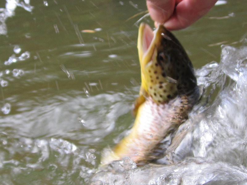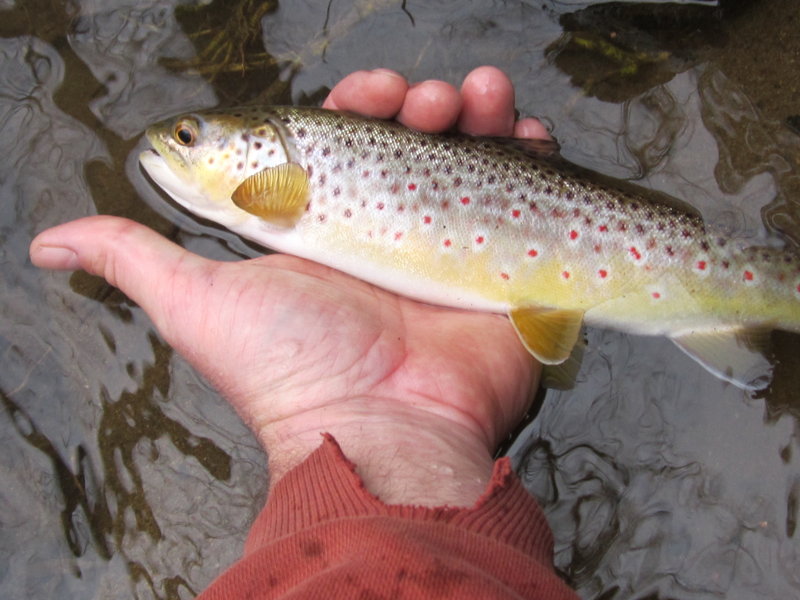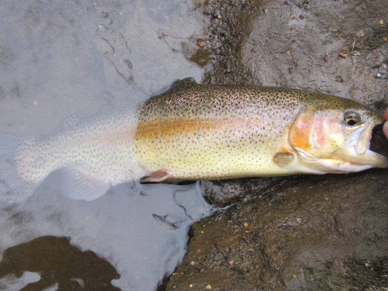 Caught a rainbow & a fat brook (loaded w/ eggs) on a # 9 floating rainbow trout Rapala.