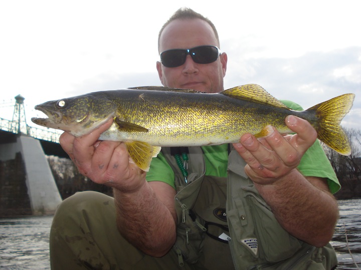 After all my running around today, being my day off, I finally made it to the river by 3 this afternoon. Started throwing jigs in various spots and came up with nothing. Wind was brutal out of the SSW today. Moved around a bit and fished under a bridge. Jigged twister tails, bright orange tipped with half a crawler, came up with 2 fish for the day. 1 Smallie coming in around 17 inches around 3 chunky pounds maybe more. also got my first keeper Walleye of the year, he goes a hair over 18 but real slim. Poor guy was hungry, fought like a champ to. Ill give him only 2.5 lbs if that. All in all a good couple hours fishing off land! Got out of there around 530, clouds started rollin in thick. TIGHT LINES!!!! IM JUST WARMIN UP!!!
