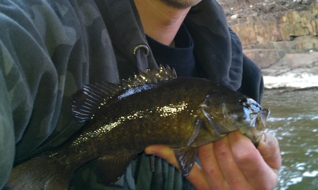 Hit the river today for a few hours. Tried 1 new spot and a few familiar. Cloudy all day but warmed up nicely mid-day. Tried a few diff things, live, spoons, spinners, floating rapalas.