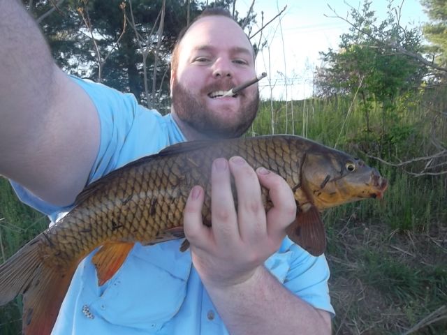 On a side note I did see 2 funny looking creatures in the water and immediately notified Mr.Catfishonthelake that MUSKY are chasing my carp! First 1 was small maybe 15 inches but came right along the shore and i could very easily see it was a musky the 2nd one came when i was releasing my 2nd carp i released the carp and he was chilling in the weeds when this Esox bully came out of nowhere and chased him! This musky was much bigger I'd say had to be close to 30 inches as it looked as big, if not bigger then a keepah striper! I had heard there were musky in here and this proves it now i need to catch them and explain to them the carp are off limits also need to birdshot those cormorants!