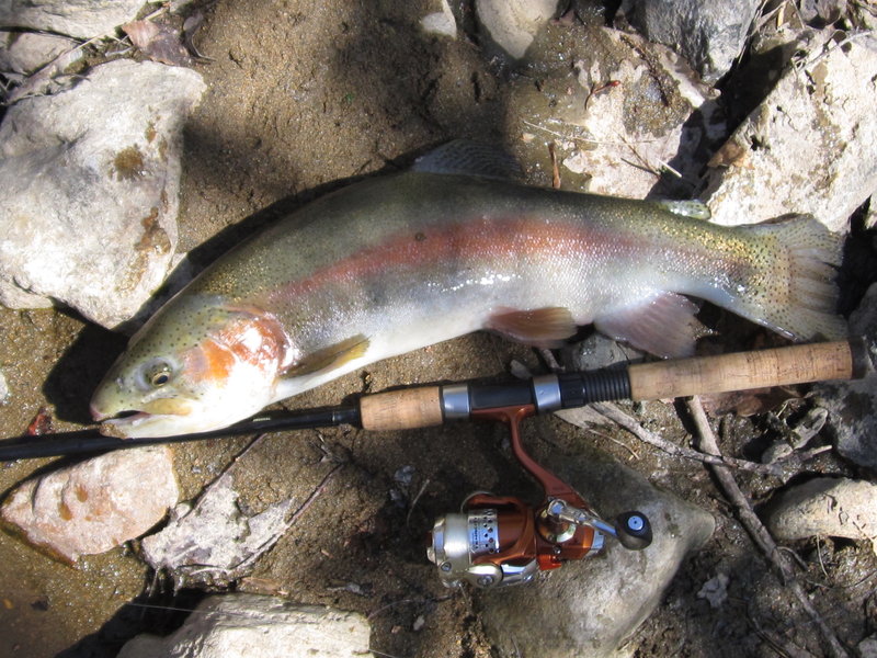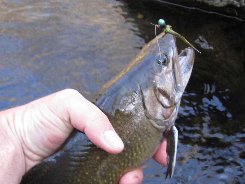 Got up there kinda late and met rutgersfan1 fished for 3hrs,lost count of how many fish with a mix of browns,bows and brookies.Tons of fish rising on a enormous amount of bugs,big fish of the day was a 22''bow that was heavy and fought like tarpon making numerous leaps,also got a brookie around 2lbs and a beautiful wild bow.