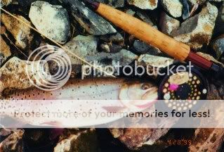 This fish is a good example of it's species for identification and should not be to difficult to ID. The fish was caught on an over sized, grizzly bi-visable dry fly tied and given to me by a Mr. Tom Brokaw ![]()