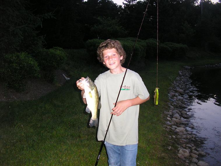 Leif and I are doing annual trip to Grandma's Pond. Tonight we had an okay pick of Bass and Hybrid Green Sunfish. Fish were caught on zoom horny toads, senkos, zoom flukes, and rooster tails. Leif used a small popper with the fly rod. He had a Bass lost and a very small Bass on the popper. Fish were hitting a little sluggish, but at a few spots we had a nice pick.