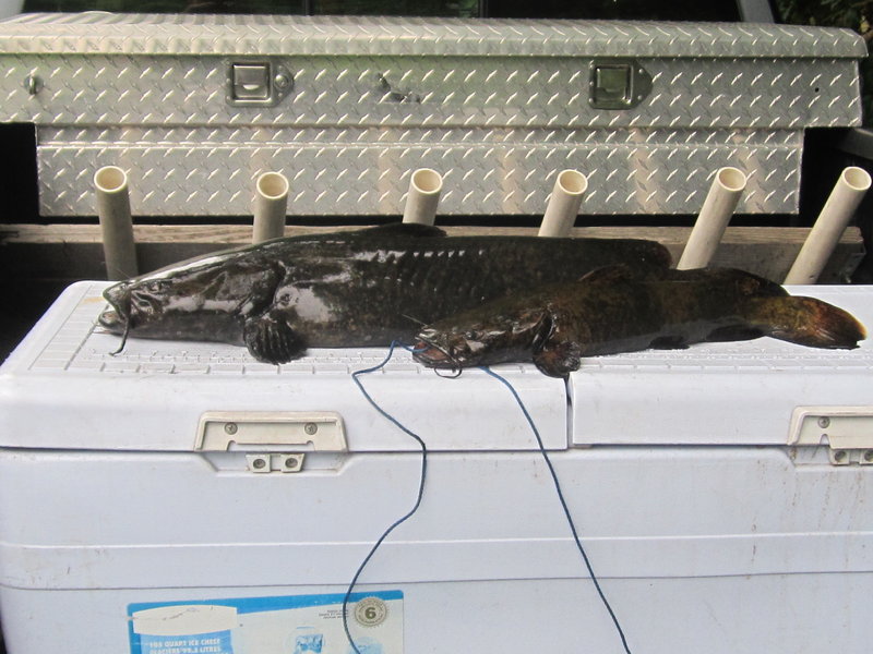 Decided to try the big D for smallies today but that quickly changed into catfishin,fished a deep run that fasteddie told me about.Managed 3 cats and 1 smallie on worms and missed quit a few more good runoffs.Got my biggest flathead to date at just over 10lbs,along with a 2 others in 3lb range.All catfish kept for the fryer.