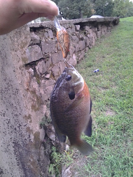 went to the same spot as the catfish night out on 7/14, casting out a bomber crawdad. managed a dink bass and big sunny in an hour and a half; sloooooow day. tried catching sunnies and night fishing the millstone but left due to lighting strikes all around me