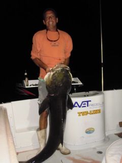 When we headed out Wed. night; we were greeted with a beautifully moonlit & flat calm ocean upon our exit from SRI. With such nice conditions, Rich practically flew us out to a couple of bottom contour areas he mentioned that he wanted to check out. When we pulled up on the first "spot", there wasn't a light from a boat within a few miles. Better yet, we found nice clean, warm water with some decent bait and fish marks on the electronics. We decided to drift and chunk sardines in this area while trying to catch some live squid to add to our bait arsenal. The squid prooved finicky at first, but eventualy Rich managed to coax a couple of them close enough to the boat for me to scoop them with a dip net. We put out a mix of circle-hooked sardines and the live squids both flatlined up top as well as down in the water column. We fished for a few hours with nothing except for a few squid when around 1 am, it happened! The deep live squid got slammed on the end of the rod right next to me just as I was preparing to enjoy an ice, cold Yuengling. I grabbed the rod, passed off my beer, and I quickly went to work on what I could immediately tell was a large and powerful fish. When I finally got the fish near the surface, we were initially disappointed that it appeared to be a 6-7' long brown shark. We started discussing possibly cutting it off to avoid a long, protracted battle. However, when I looked behind the "shark", I could see a ~40-50# cobia following along behind it. I tried to bring the "shark" close to the boat while the others tried to hook the following free swimming cobia on a jig. We were unsucessful in getting the free swimmer to bite; and eventually, my fish ran under the boat. I moved to the other side to clear the line, and I fought the fish to the surface for a 2nd time where it breached on top for just a split second. As it breached, the hydroglow light we had deployed on the opposite side of the boat, fully illuminated the fish to reveal that it was not a shark ... IT WAS A HUGE COBIA!!! .... with a smaller cobia following it. Capt. Rich shouted "that's no shark ... IT'S A MONSTER COBIA!" At that point, the adrenaline and energy level went into overdrive as Capt. Rich grabbed his gaff. On his first shot, the gaff ripped out of the gills. The fish ran leaving a plume of blood trailing out of it, and I had to bring it back to the boat for another shot. On the next try, Capt. Rich planted the hook deep into the dinosaur's throat' it took the 3 of us together to slide the behemoth up over the gunnels. We looked like we were pulling in a "markah" on TV. The fish had already bent the gaff hook, so once on the deck, Capt. Rich quickly introduced the beast to his "Fishy Be Good Bat" to finally get it subdued. We immediately started wildly celebrating with fist bumps, photos, and high fives as we knew that our trip had just become a HUGE success. As the realization of just how big this fish truly was sunk in, we realized that we may have just landed the new state record cobia as we could tell this fish was definitely over 70 lbs., & none of us knew the state record weight for cobia. On our way back in this morning, we learned that the state record cobia was an 87-pounder that was caught off of Sea Bright back in 1999. We knew my fish was every bit of 75 lbs., so we decided to weigh it at a certified scale to be sure of its weight. We took the fish 1st to Fishermen's Den in Belmar where it tipped the scales at 82 lbs. With the fish being within 5 lbs. of the state record, we decided to run it down to Hoffman's in Brielle to get a certified scale weight(just to be sure.) Once again at Hoffman's, the fish stretched the needle to the 82-pound mark. Only 5 lbs. off the current state record, but I am guessing it is in the top 5 cobia ever taken in this state. We may not have broken the state record, but we definitely caught one hell of a big fish & we had a great time doing it! Filleting that thing back at the dock was more like butchering a deer than filleting a fish; instead of a world record citation, we ended up getting an amazing amount of awesome "lemon fish" flesh to divide among us. Thanks again to Capt. Rich for putting me on such a great fish, and I hope we can get out again real soon to try those super secret, special cobia rigs again real soon. I am sure Capt. Rich will post more details including the tackle/gear used and much better photos. I was so excited that I just had to get these out there to share right away. - Gr8ful ![]() ![]() |