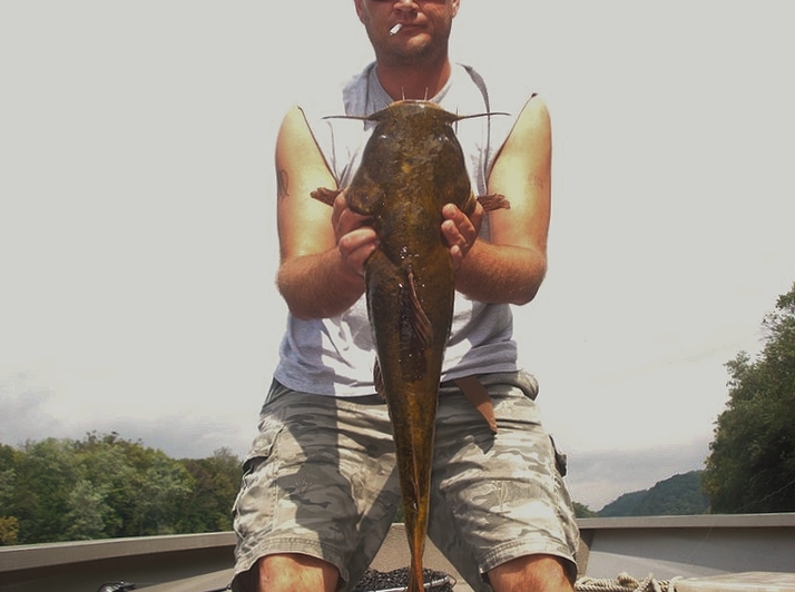 Got to the ramp at 545 am, shad fry everywhere. Launched the boat at 6 AM. Still dark out, head over to the WALLEYE grounds. 2 short eyes right off the bat, but short, both 15 inchers. Sun comes all the way up around 630, look at the water, pretty stained, heard they had some rain out there last night. 7 AM it starts to drizzle, then stops, then starts again around 830. Anyway, the drizzle pulls out and then the wind started honking out of the south 15-25, Im drifting and jigging for eyes but im drifting upstream and in circles cus of the crazy wind. Decided to anchor up in some current around 10 am and managed to jig up 1 more eye but only a 12 incher. Oh well, the big ones are biting at night guaranteed! Havn't had time to do the night bite thing lately. Set up some cut bait rods and threw them in, lots of run offs. Managed to get 1 FLATHEAD CAT in the boat 25 inches and 6.7 lbs. All in all it was a good day with some action and Im gonna make me some fish tacos tonight and drink some BEERS. Water is stained fellas and after tonight it should be unfishable for a while. Well, there will be cats and other fish to catch in the high water. The finesse fish will be hiding in the rocks. GOOD TIMES TIGHT LINES!!!
