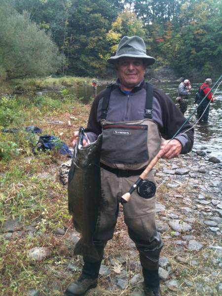 Fishing on the river with Mikey Topaz first salmon and steel head on a fly rod Mikey Chris Jimmy and Mikeys Dad have been showing me how to fish a fly rod FISH ON !!!