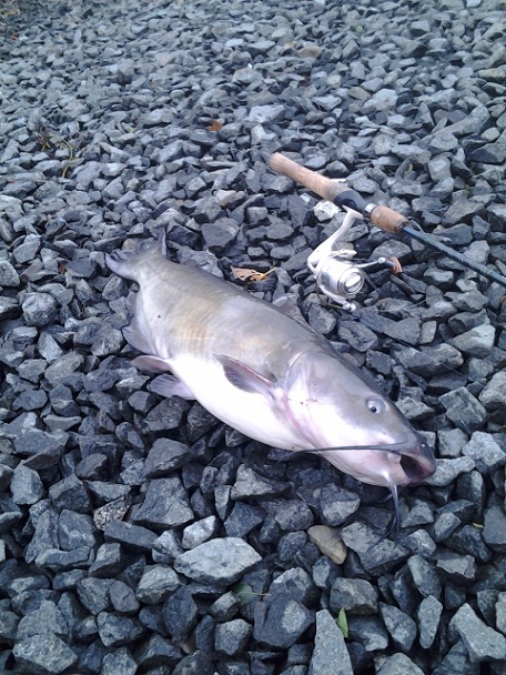 Well i haven't been online for 3 days from the hurricane but now i finally got a chance to post this. On Tuesday, the day after Sandy hit i headed over to Manalapan lake for some bullheads on lite tackle with the leftover chicken liver from the last trip before the storm hit. It was cold but the water was surprisingly low and grey-ish. Fished shallow water and caught 2 bullheads right away to my surprise. Third fish hit, started out as a couple lite taps but after the hook set, dead weight and head shakes. The beast splashed around, screamed drag and almost ran under the railroad bridge