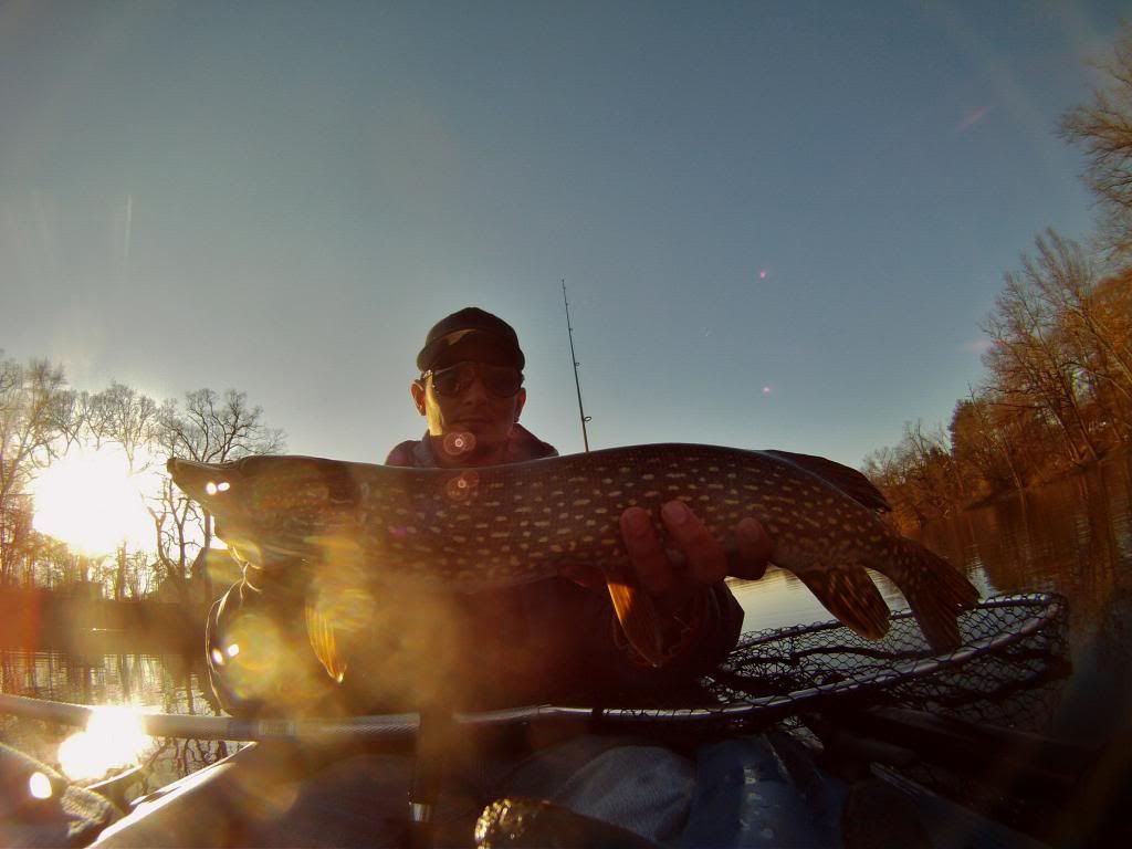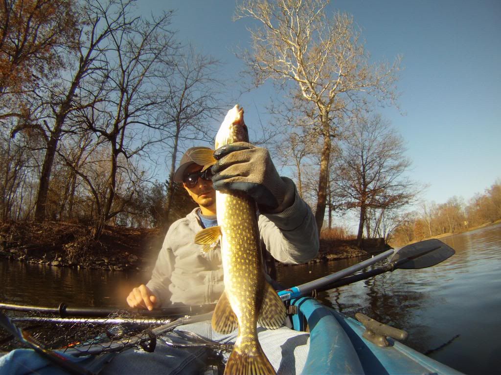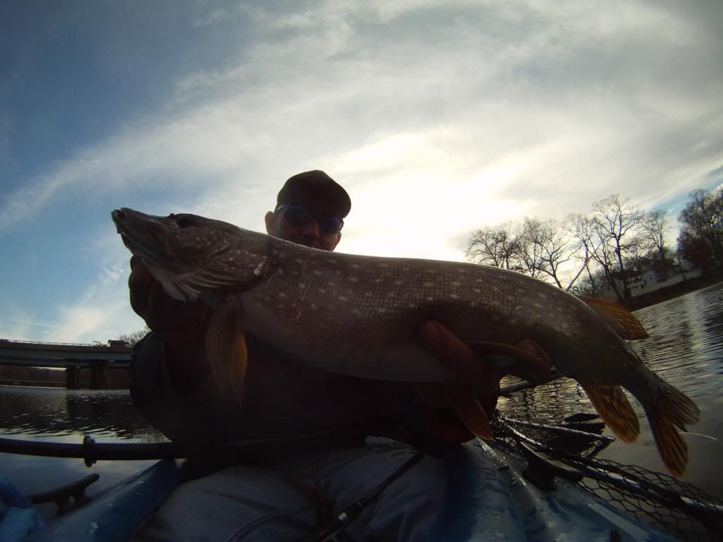 Got out in the kayak for some afternoon fishing on Friday and Saturday. Decided to stay local and target the Pompton and Passaic Rivers. Started off slow rolling a few different color spinnerbaits and got absolutely no love whatsoever (pretty surprising). Swapped lures a few times until I found what they wanted (big Husky Jerks). Ended up with 4 Pike on Friday and 3 on Saturday with a few more hookups that didn't make it to the boat. No beasts, but all healthy chunky fish between 20"-26" with one close to 30". Had one fish, which would have been the biggest, take a darting last minute swipe at my lure boatside but no hookup. Water temps were about 45 degrees. None of the fish were caught in my usual summer spots.