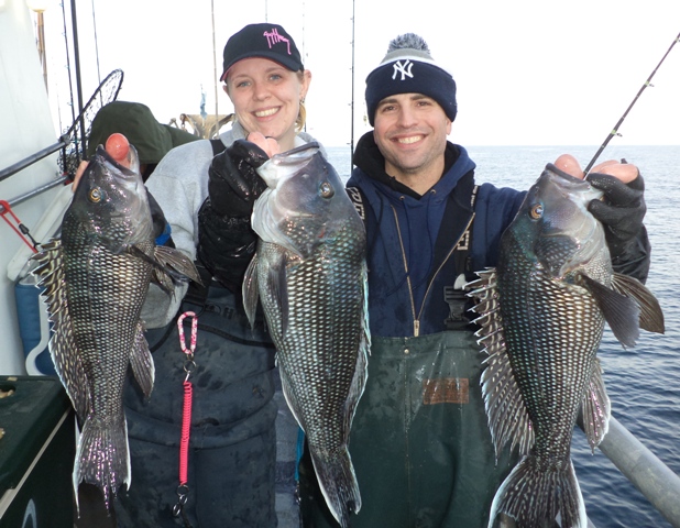 It was another good trip to the offshore wrecks today. Limits of Giant Sea Bass, a number of jumbo porgies each, and limits of bluefish, were had by all on board today along with a few Pollock and cod up to 35LBS.