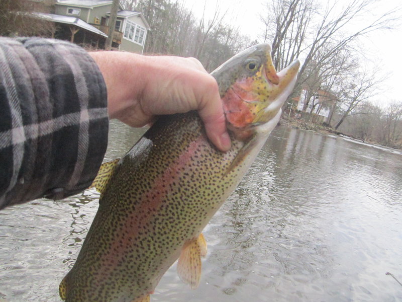 Tired of sittin in the house so I made a quick run to the south branch in the califon area.Worked dark colored artificials slow and low and managed 6 bows from 14"-21",all fish were aggressive and had a few follows right to my feet.The deepest holes held the fish the flows were great and clarity was good.