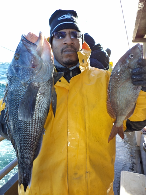 |  Sailing 11PM Sunday - Offshore Sea Bass - 1/19 report Offshore Giant Sea Bass - Jumbo Porgies   Sailing 11PM Every Tuesday – Thursday – Friday & Saturday & Monday Martin Luther King Day (Sailing Sunday Night Space Available) 1-19 Offshore Sea Bass Report Fishing was very good again Saturday on the offshore wrecks for Giant Sea Bass and Jumbo Porgies. The blues did not bother us much today so we had steady fishing for Sea Bass and Porgies all day. Everyone on board caught their limit of Sea Bass and many also caught their limit of Jumbo Porgies. The pool winners were: Cai Zhong Chen from Harrison NJ with a 6.5LB Sea Bass, a limit of sea bass and 10 porgies, Dave Klein from Dover PA with a 6.2LB sea Bass. Some of the passengers catching their limit were: Glen Padla from Hillsborough NJ with a limit of Sea Bass and a limit of Porgies, Dan Valis from Manville NJ with a limit of Sea Bass and a limit of Porgies, John Taylor from Denver PA with a limit of Sea Bass and a limit of Porgies, Anthony St Jaenos from Manalapan NJ with a limit of sea bass, Ken Pojnar from Hazlet NJ with a limit of Sea Bass, Ray Jasilioni from Easton PA with a limit of Sea Bass and a limit of Porgies. The big Jamaica is scheduled to sail offshore every Wednesday, Friday, Saturday and Sunday leaving 11PM the night before. We have also added a trip for Monday 1/21 leaving 11PM the night before. There is space available and the weather looks good for that trip. More photos at: facebook.com/TheBigJamaica We now have “Ventafish” venting tools available for purchase for those who catch their limit early and want to release the rest safely. They can also be purchased at www.boganmarine.com For our complete schedule go to: www.bigjamaica.com We are now taking reservations. 732-528-5014 Capt. Howard Bogan