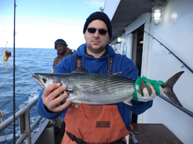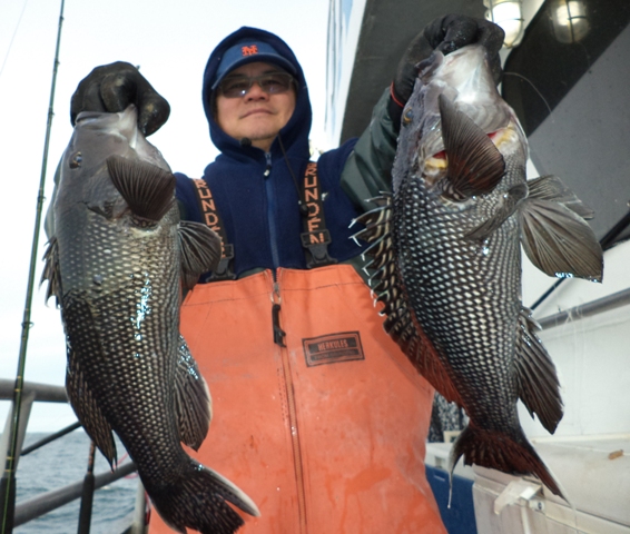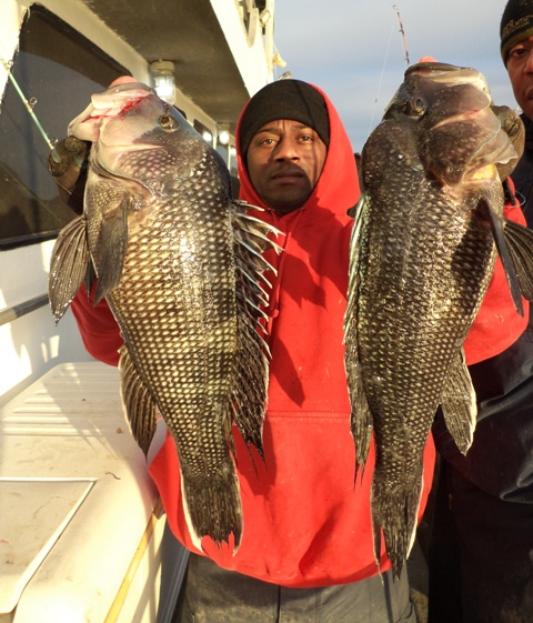 |  Sailing Thursday 11PM - Big Jamaica Offshore Report 1/21 Sailing 11PM Every Tuesday – Thursday – Friday & Saturday & Monday Presidents Day 1-21 Offshore Sea Bass report Just when you thought it could not, get any better, it does! We had another great day on the offshore wrecks again today with limit catches of Giant Sea Bass for everyone and limit catches of Jumbo Porgies for many, plus bluefish, a weakfish and another bonito! Fishing started out as a slow pick in the dark. Once the sun rose it picked up and, as the day went on, fishing continued to improve. Giant Sea Bass, Jumbo Porgies and some bluefish schooled up 30’ to 35’ thick, under the boat. Most passengers used clams but many did well jigging with either a Silver jig or a gold jig and teaser. The pool winners were: Yiz Huang from Linhurst NJ with a 6.7LB Sea Bass, his limit of sea bass and 18 jumbo porgies, Kevin Holden from Westhampton NJ with a 6LB Sea Bass, his limit of sea bass and 18 jumbo porgies. A few other notable catches were: Shelton Shevers from Maryland with his limit of Giant Sea Bass and Jumbo Porgies, Arthur Spatafore from Browns Mills NJ caught his limit of Sea Bass & Porgies, Steve Moran from Point Pleasant Beach caught his limit of Giant Sea Bass, Jumbo Porgies and a nice weakfish. Carlton Reese from Kew Gardens NY caught his limit of sea bass and 10 porgies, Richie Schwartz caught his limit of sea bass and 18 porgies. It looks good for upcoming trips. The water temperature is still 53 degreees offshore so, the Sea Bass & Porgies should continue to migrate to the 50 to 75 mile wrecks. The big Jamaica is scheduled to sail offshore every Wednesday, Friday, Saturday and Sunday leaving 11PM the night before. We have also added a trip for Monday , Presidents Day sailing 11PM the night before. More photos at: facebook.com/TheBigJamaica For our complete schedule go to: www.bigjamaica.com We are now taking reservations. 732-528-5014 Capt. Howard Bogan
