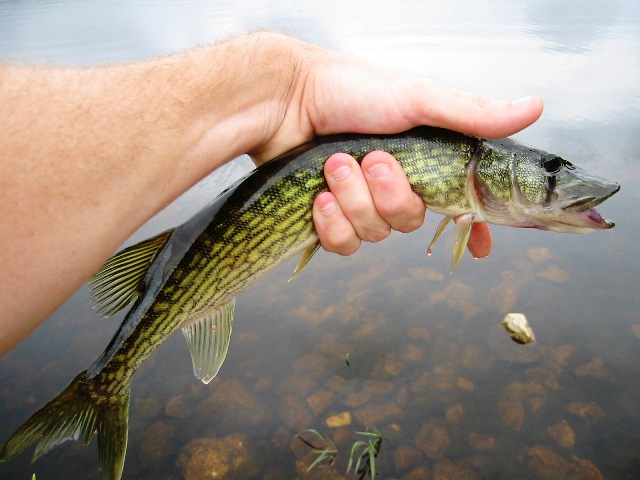 There is a killer fly for Pickerel...I discovered it years ago while fishing in the catskills. The fly is the bead head purple crystal bugger. Pickerel can't resist it. The other is a yellow deer hair streamer. I use an Orvis 7ft 9in 5wt rod with weight forward floating line as mentioned above. The reel is a Orvis Battenkill Bar stock for 3-5 wt line. The backing is 75 yds of 20lb dacron. The shorter rod will allow you to cast under hanging branches and tight conditions. Leif