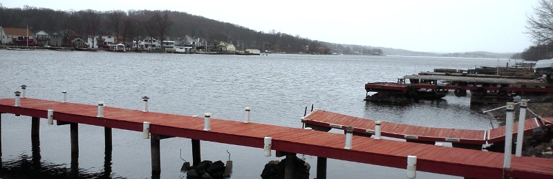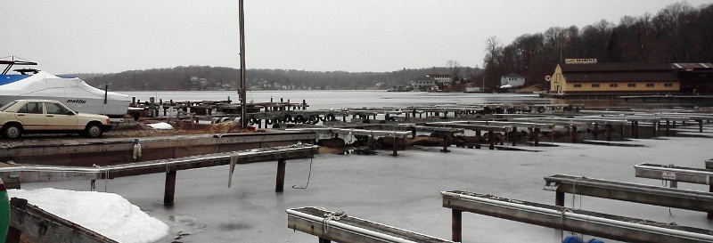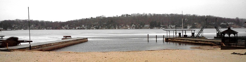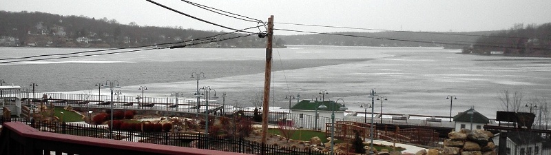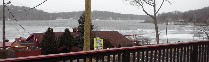 Today I was down by Lake Hopatcong on business so I figured I would make a photo report of the ice / open water. The lake is still about 2 1/2 feet down from normal. I wasn't as far down as Landing and the state park so no report for below Bertrand Island. Pics are from 11AM today and are as follows: